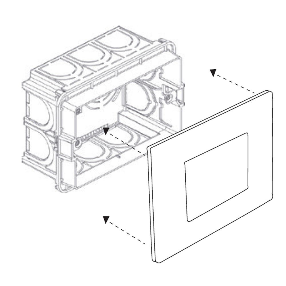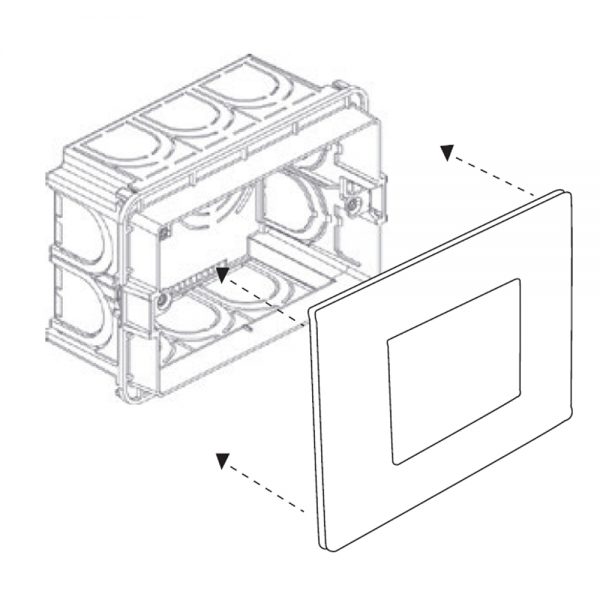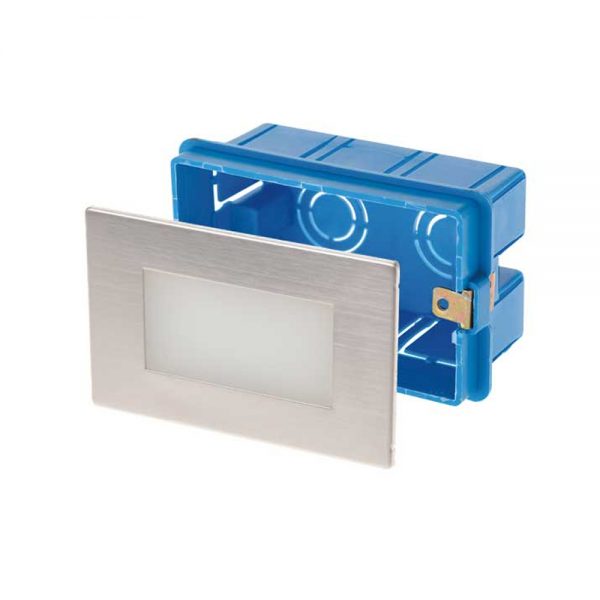 Equipo de emergencia embutido para caja 100×65. Uso exterior e interior LED incorporado, 3W, 200lm, 4000°K, IP65. Dimensiones largo 110mm, alto 77mm y profundidad 40mm. Autonomiía de 3hrs.
